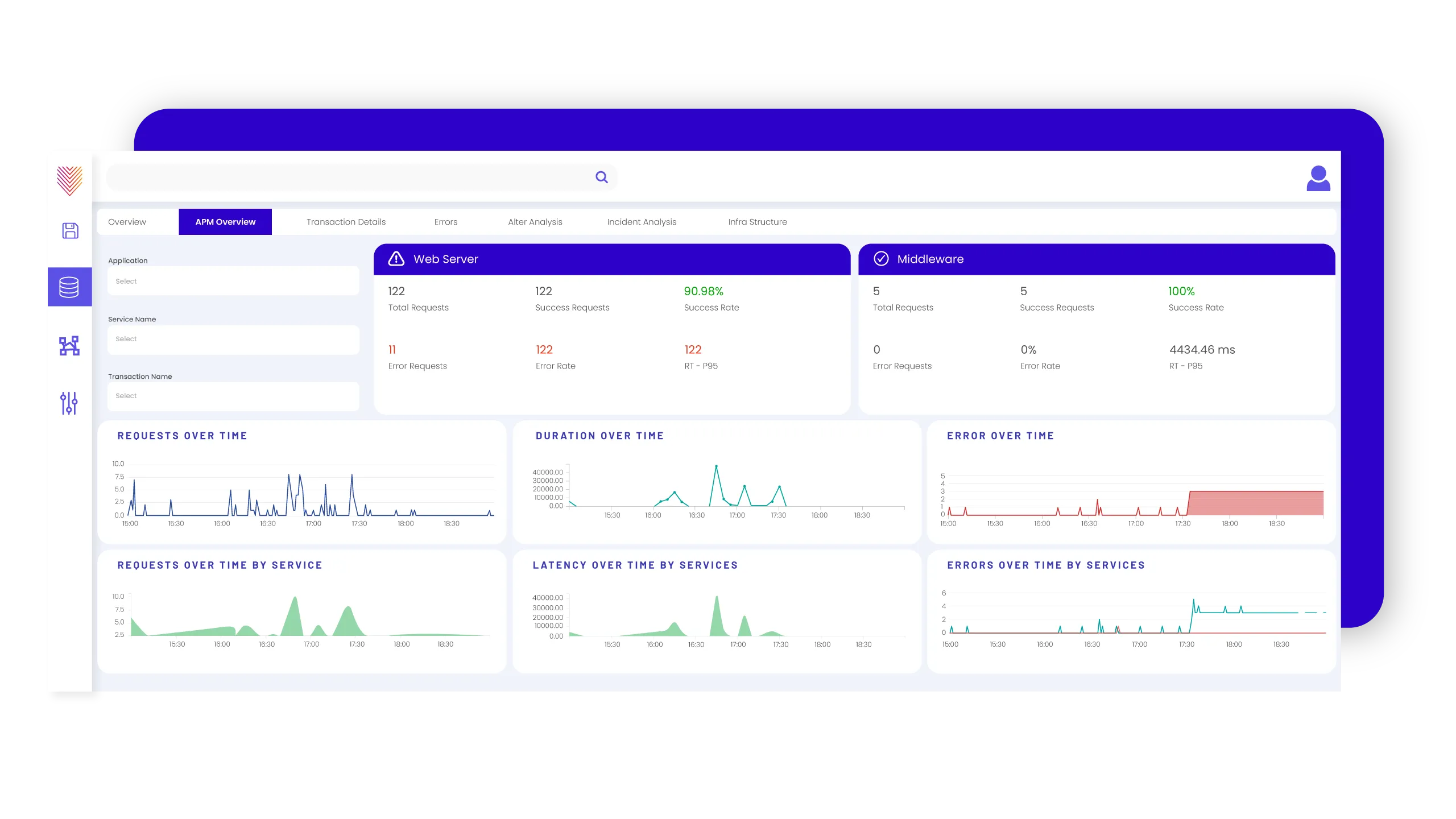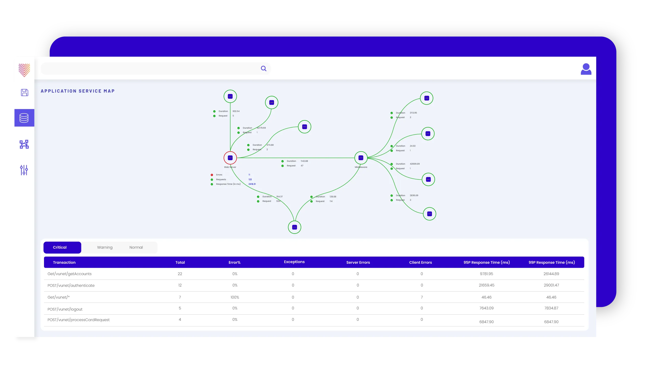 vuApp360 stands out by offering a bird’s eye view of complex application landscapes. It enables users to maintain vigilant oversight of application performance, swiftly identify and rectify issues, and enhance application efficiency. With vuApp360, you can optimize resource use, ensuring peak performance and customer satisfaction. Here's a closer look at the product capabilities that make this possible: