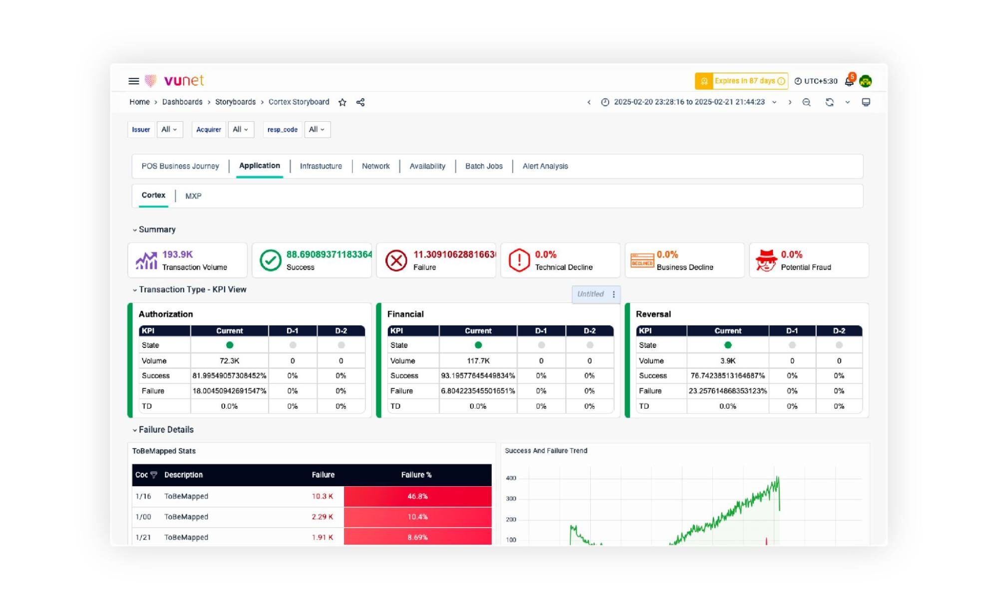 An agent receives a complaint about a failed UPI payment. With VuNet, they instantly see that the failure was due to a delay at the beneficiary bank’s switch — and can inform the customer within seconds, not hours.