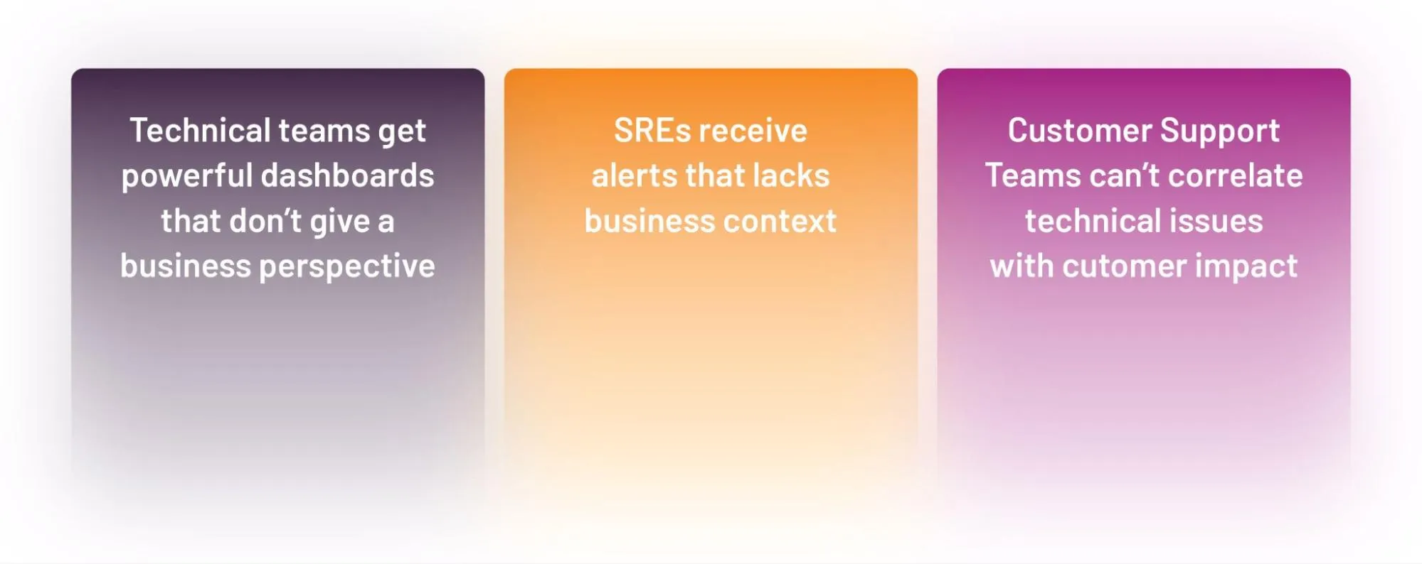 Despite having best-in-class platforms, enterprises struggle to realize this as they operate in deeply fragmented and high-stakes environments, spanning core banking systems, API gateways, ESBs, firewalls, cloud systems, mobile apps, payment switches, and third-party processors. With data trapped in silos, teams struggle to understand the true business impact when failures or issues occur.