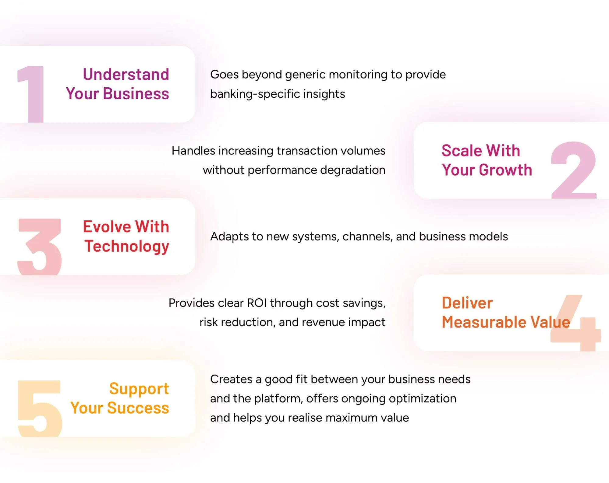 Arjun: Exactly. High-performance business observability is about context, scale, and insight. Get that right, and you not only justify the investment but future-proof it. And remember another thing. Selecting a business observability platform isn't just about comparing feature lists. It's about choosing a strategic partner that will: