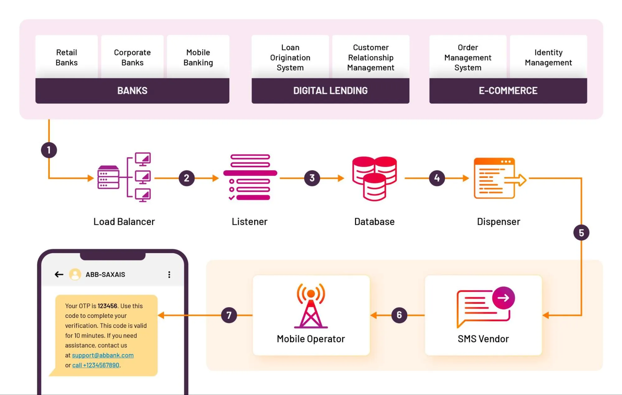 When you request an OTP, a complex journey begins:Source systems are often critical platforms on which users interact.
