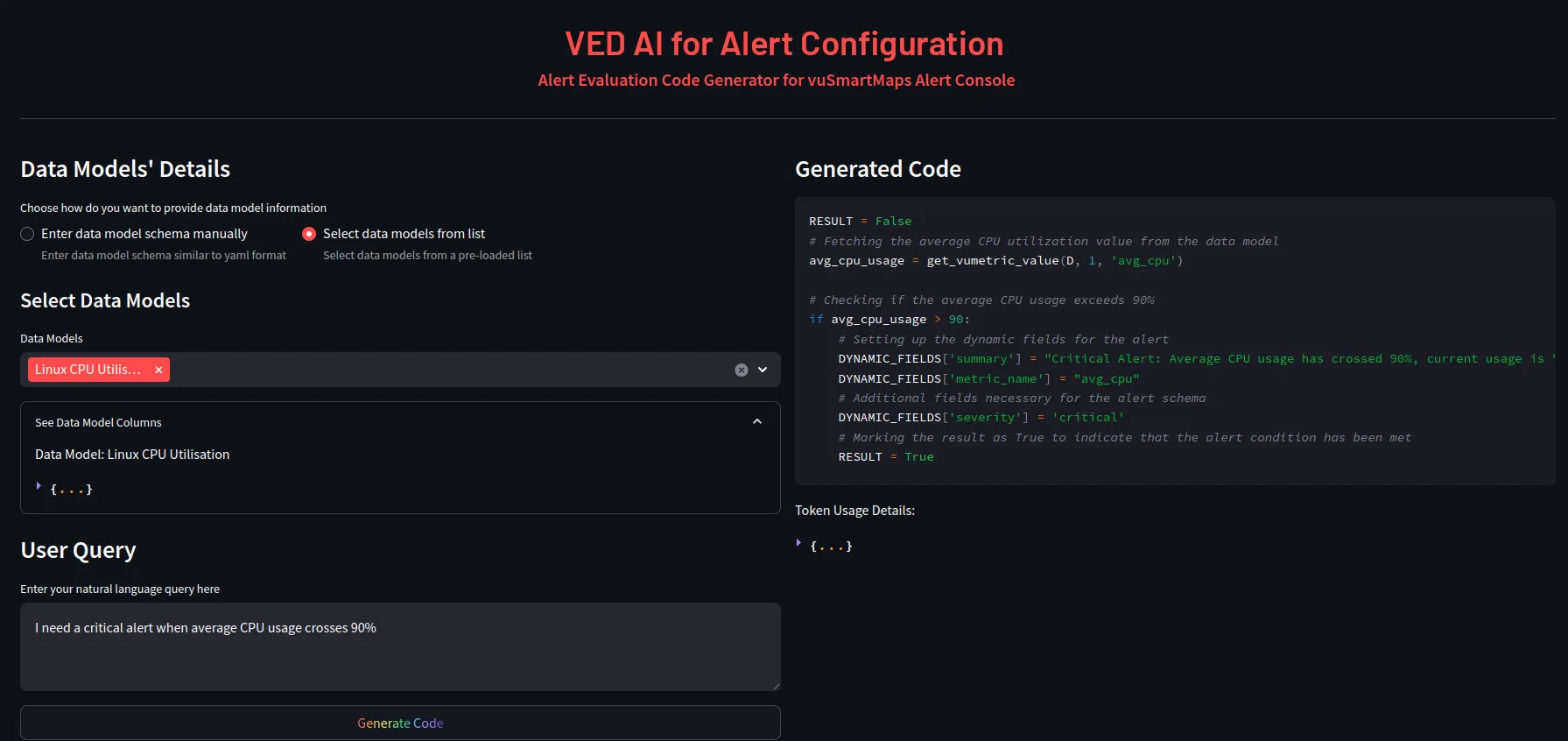 As we continuously enhance our roadmap, we believe the future of Observability will be marked by increased recommendability and greater infusion of domain centric Large Language Models (LLMs) throughout the Observability stack. With this vision in mind, we are already working on Ved AI for Alert Configuration—a cutting-edge tool powered by generative AI.Ved AI for Alert Configuration is meticulously designed to make configuring complex alerts more user-friendly by allowing you to articulate your alert logic in plain English. This will expedite the configuration of complex alerts, saving time.