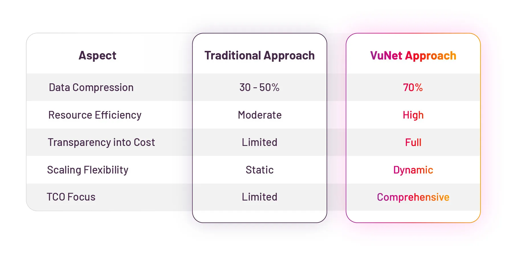 - Focus on TCO: Unlike many vendors, we address hidden costs associated with scaling and clustering systems, providing a more accurate picture of long-term expenses.
