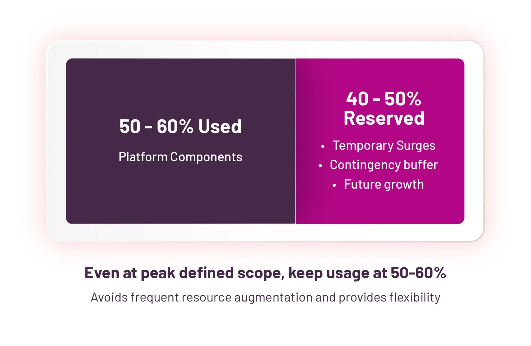 One ground rule to remember is to not size for the full capacity of nodes running the platform components. In other words, even at its peak of the defined scope, the platform VMs/workers should be consuming not more than 50-60% of resources. This is crucial to