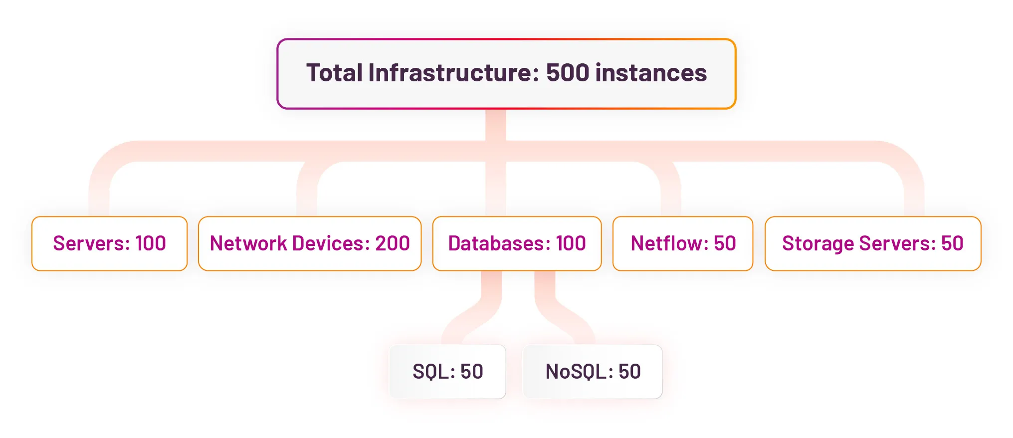 A critical part of accurate sizing is understanding the variety of telemetry. Detailed scoping inputs make all the difference. For example, knowing the breakdown of 100 servers, 200 network devices, 50 SQL and NoSQL databases each, 50 Netflow, and 50 storage servers provide far better insight than a blanket scope of 500 infra monitoring instances, allowing the system to size itself for the real load. This helps to estimate the data volume, the number of agents, data collection frequency, data arrival concurrency and how the load will affect the platform.