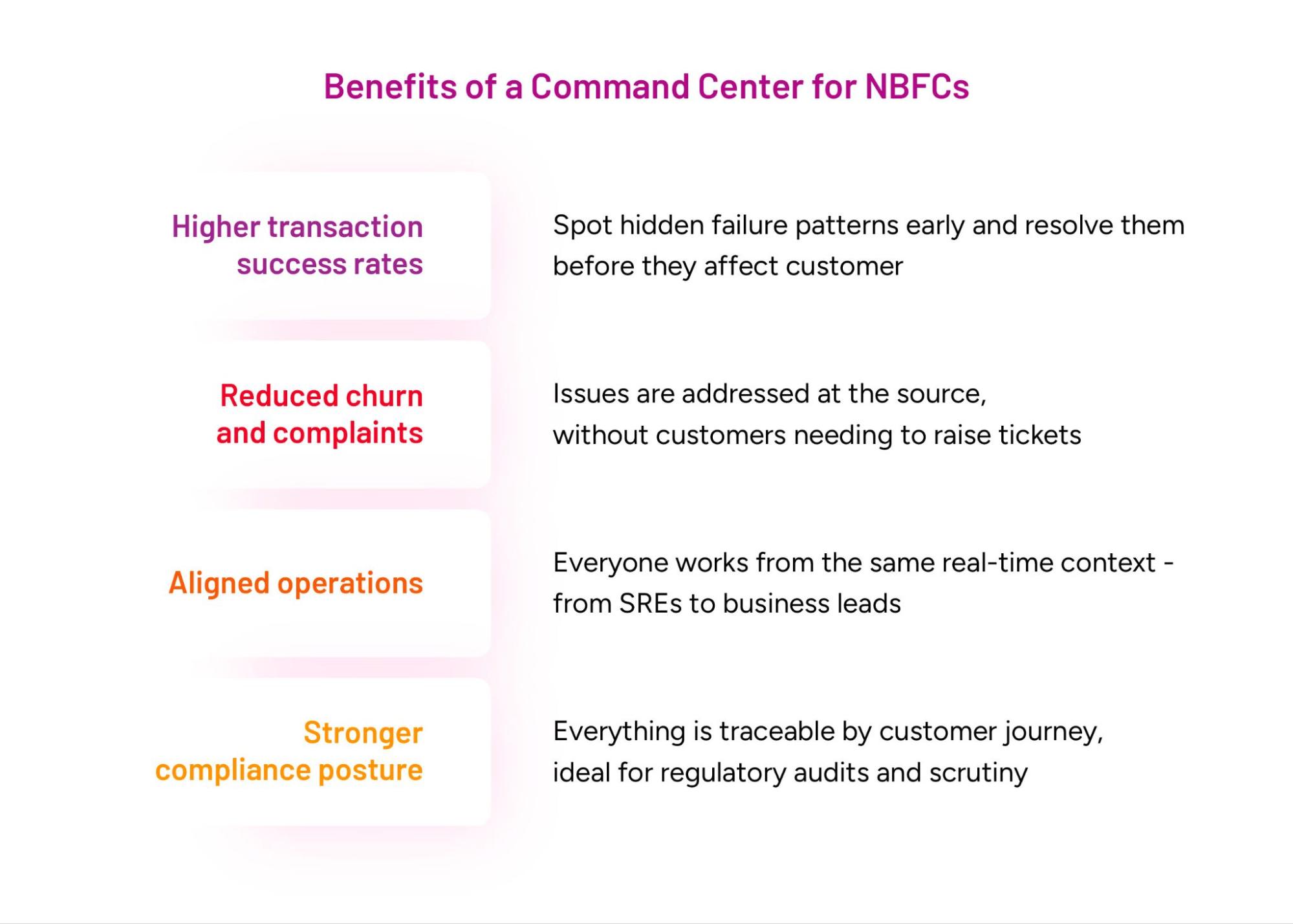 To navigate this new landscape, NBFCs need more than Business Observability; they need a Command Center that acts as an operational nerve centre, turning real-time insights that observability provides into coordinated action. With a Command Center, NBFCs can: