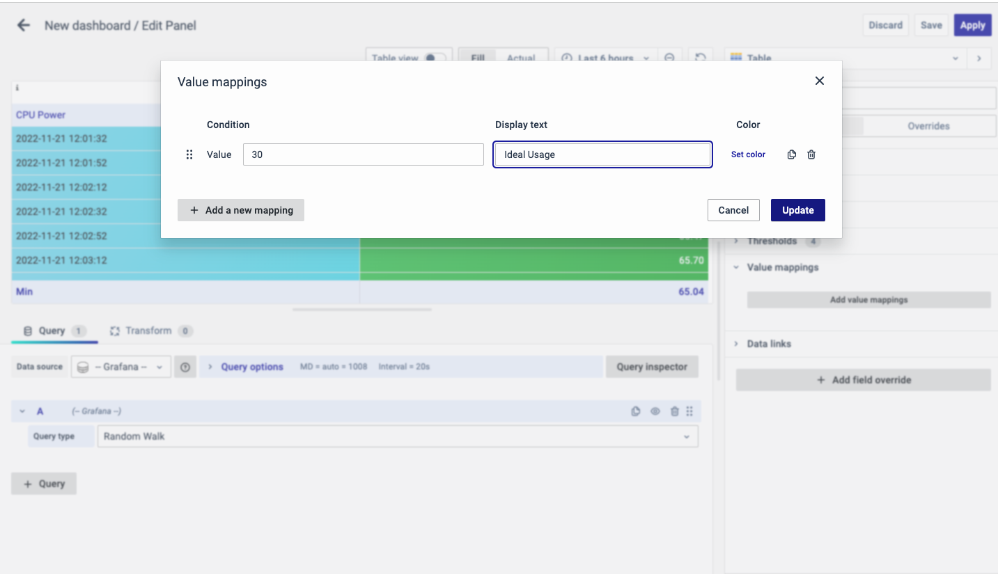 The Value Mappings option allows you to find a specific value and wherever the value lies, the display text is displayed. If there is a similar value in the data, it is highlighted in the form of the color selected.