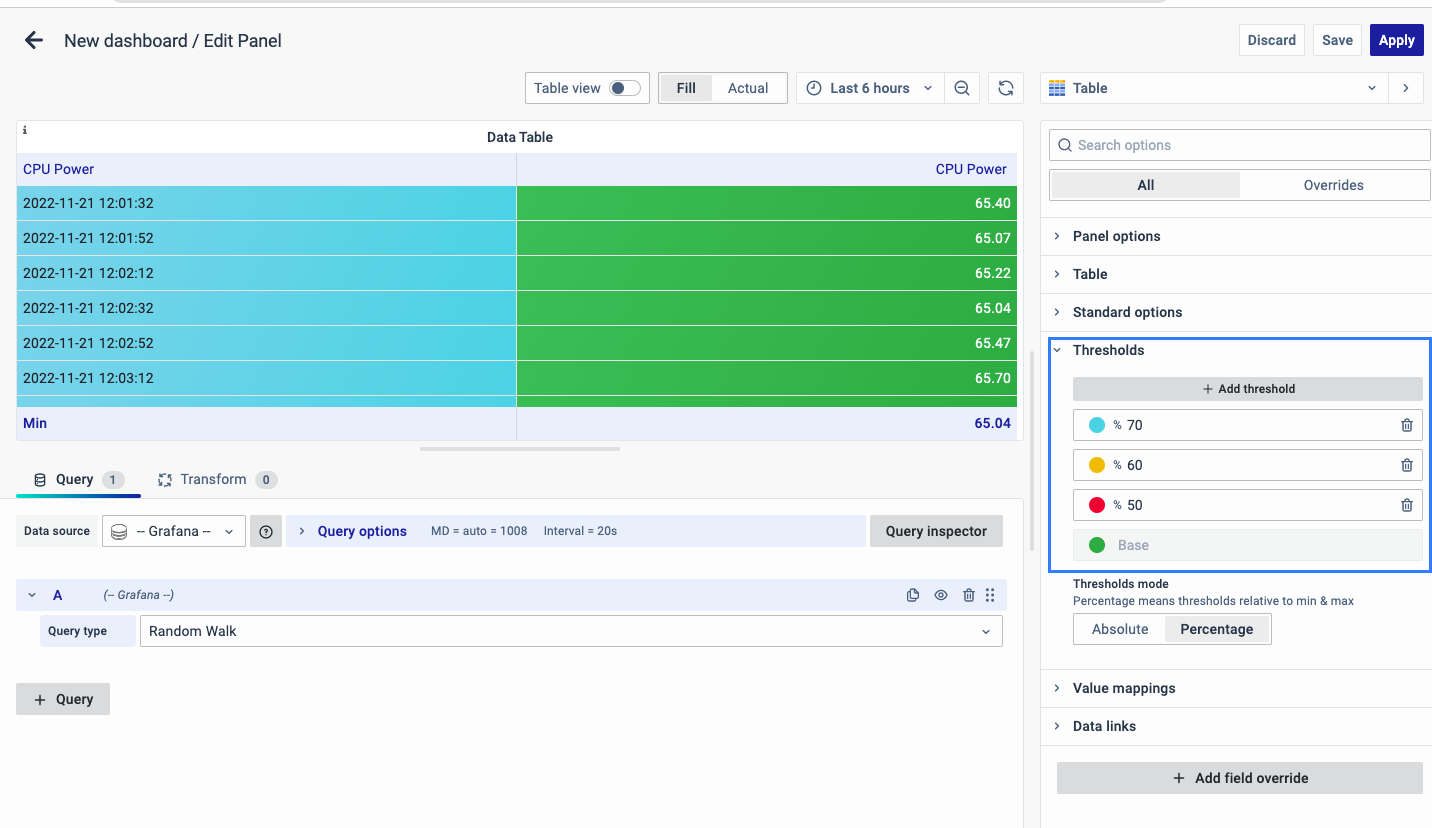 The Threshold option is used to define the value threshold. You can set certain thresholds and color-code them.