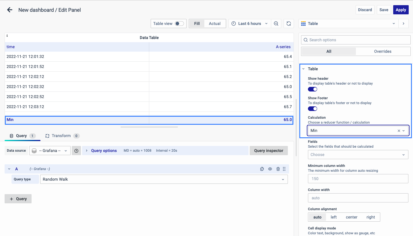 This is applicable only when "Show Footer" is enabled. Whichever reducer function we select that value will be added as a footer as a separate row.
