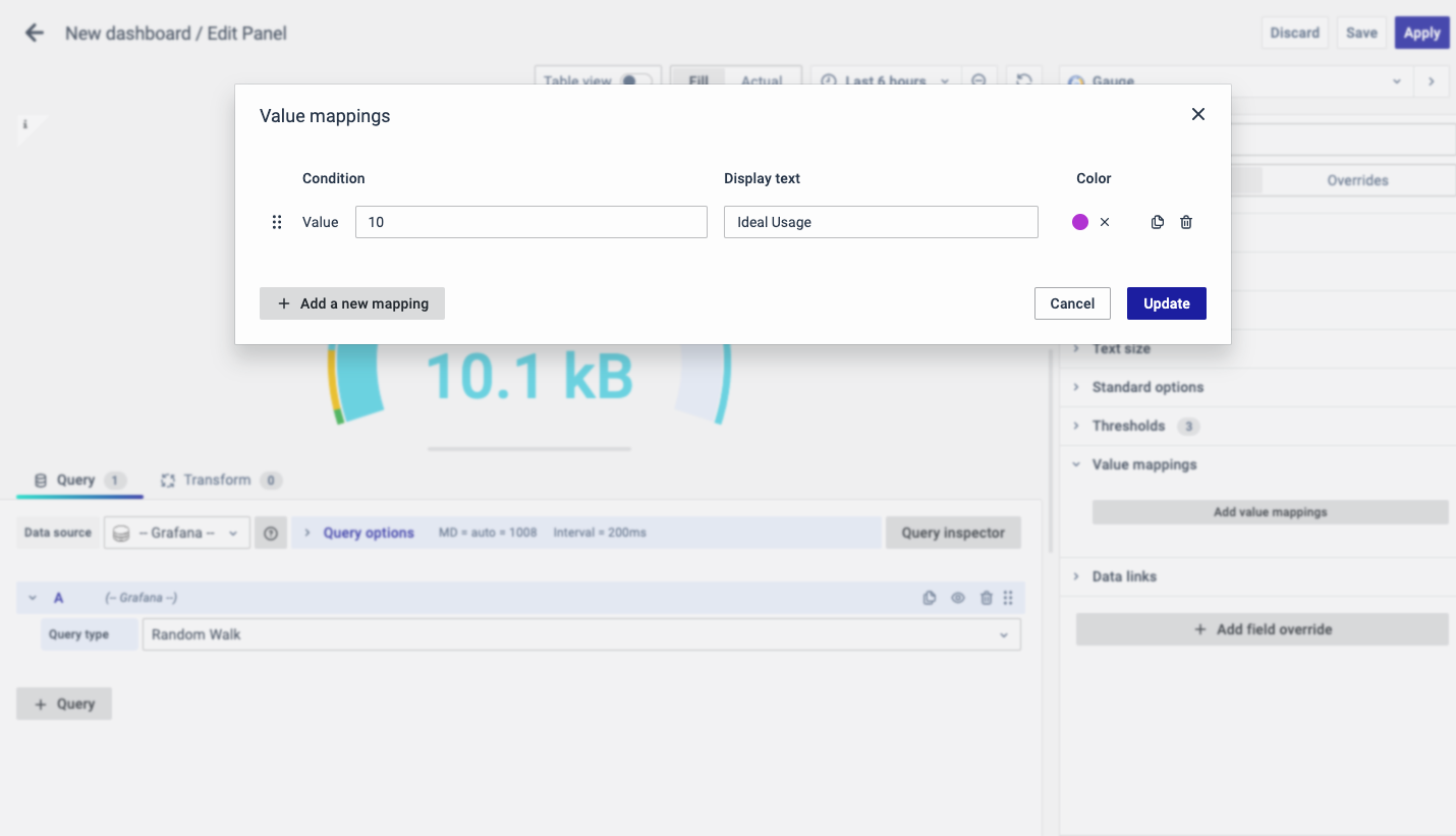 The Value Mappings option allows you to find a certain value and wherever the value lies, the display text is displayed. If there is a similar value in the data, it highlights in the form of the color selected.