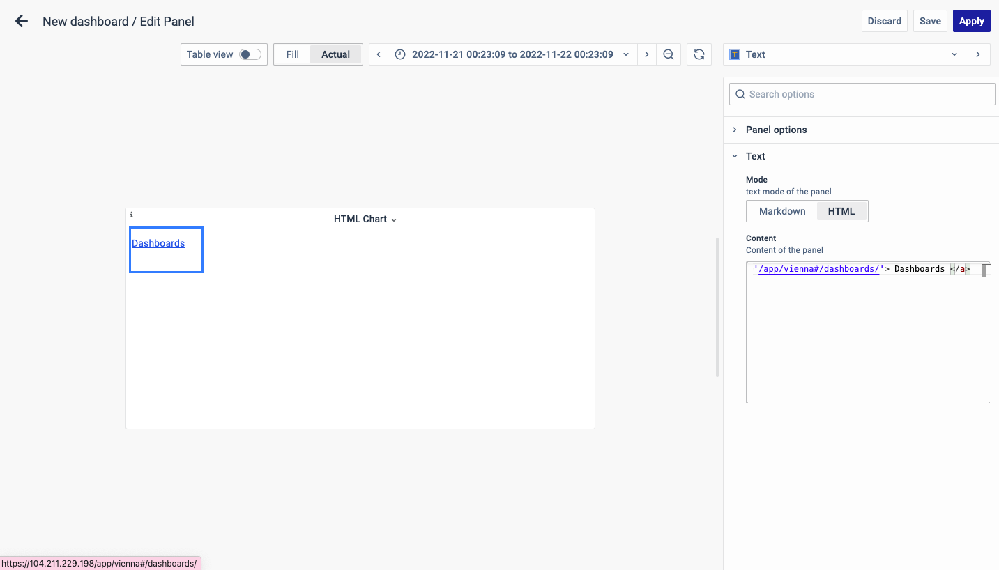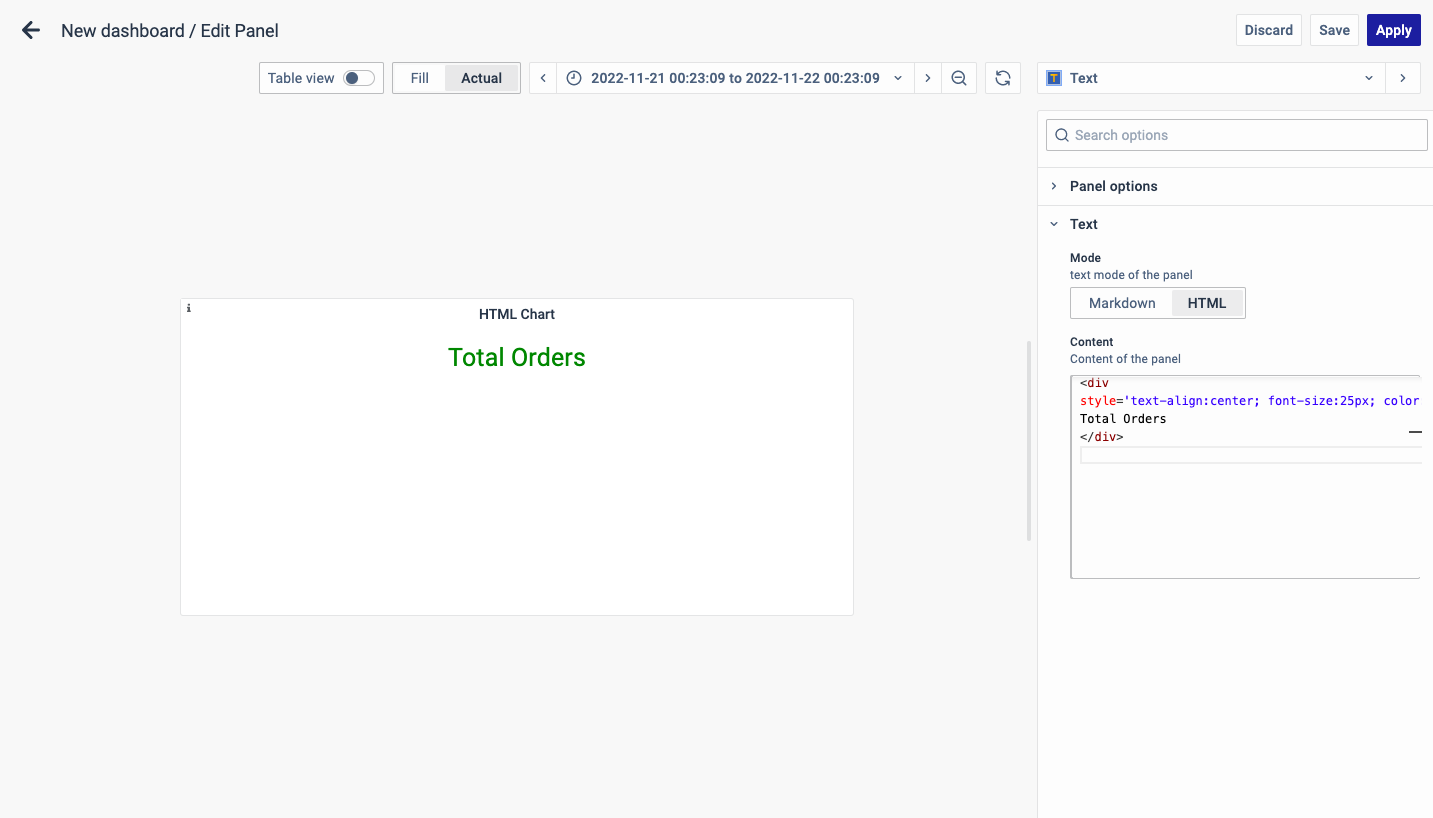 You have now learned how to configure the HTML Visualizations, change the panel settings, and more. You can save and edit the panel later too.