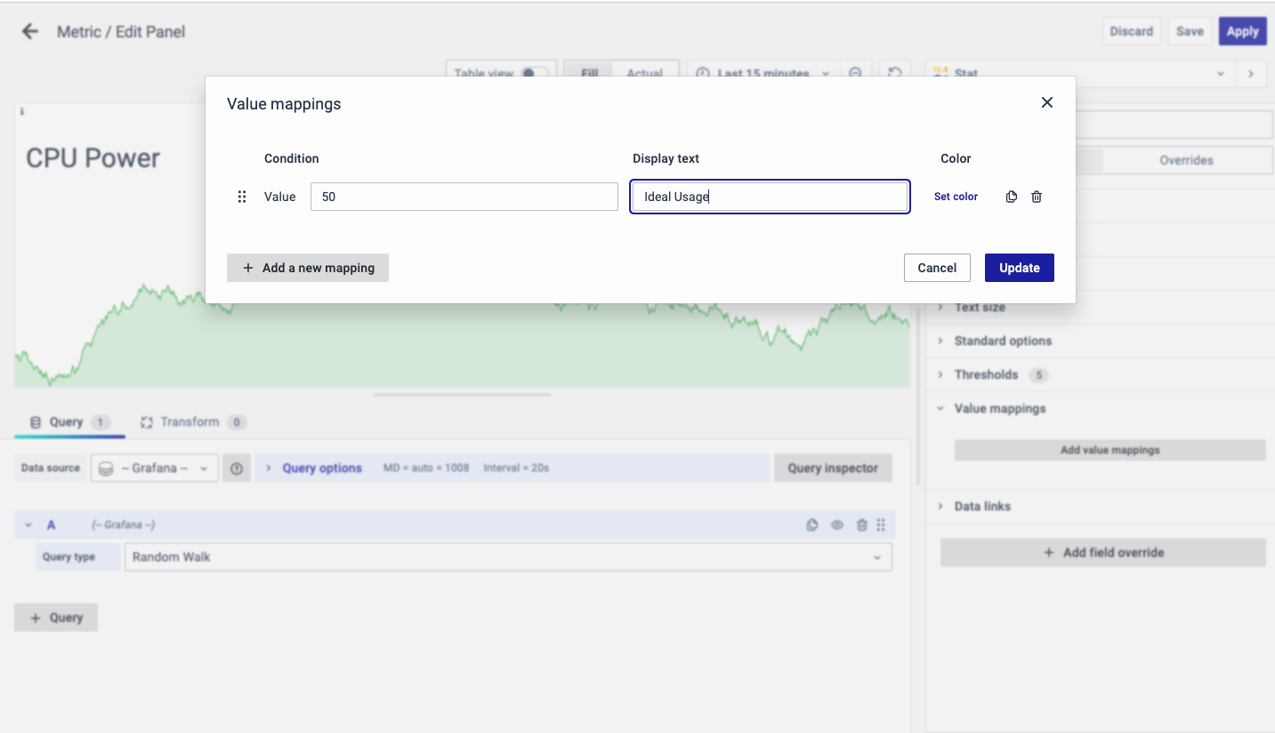 The Value Mappings option allows you to find a certain value and wherever the value lies, the display text is displayed. If there is a similar value in the data, it is highlighted in the form of the color selected.