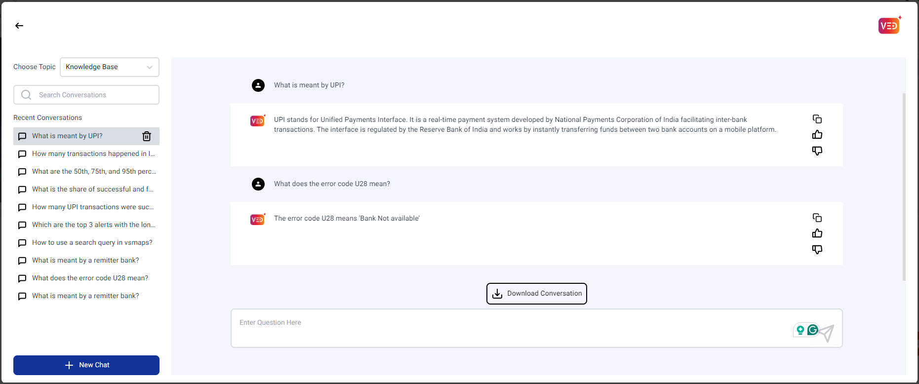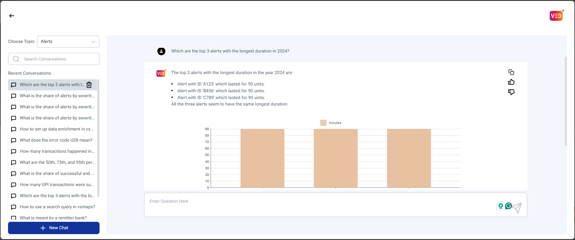 Ved simplifies tasks and enhances observability by providing quick, accurate responses to user queries. It integrates with internal knowledge bases to deliver reliable insights across transaction analytics, alerts, and documentation. With its intuitive interface, Ved saves time, reduces effort, and helps users focus on resolving issues efficiently.