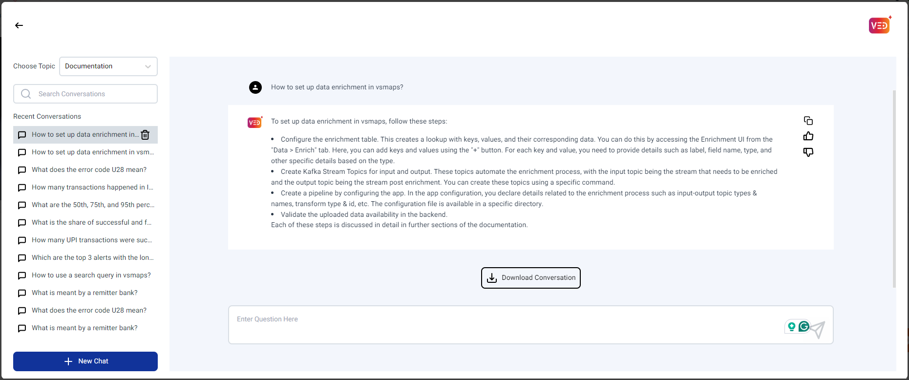Navigate vuSmartMaps documentation easily using natural language. Ved helps you find configuration steps, feature details, and best practices, whether you're a beginner or an advanced user. - Enterprise Knowledge