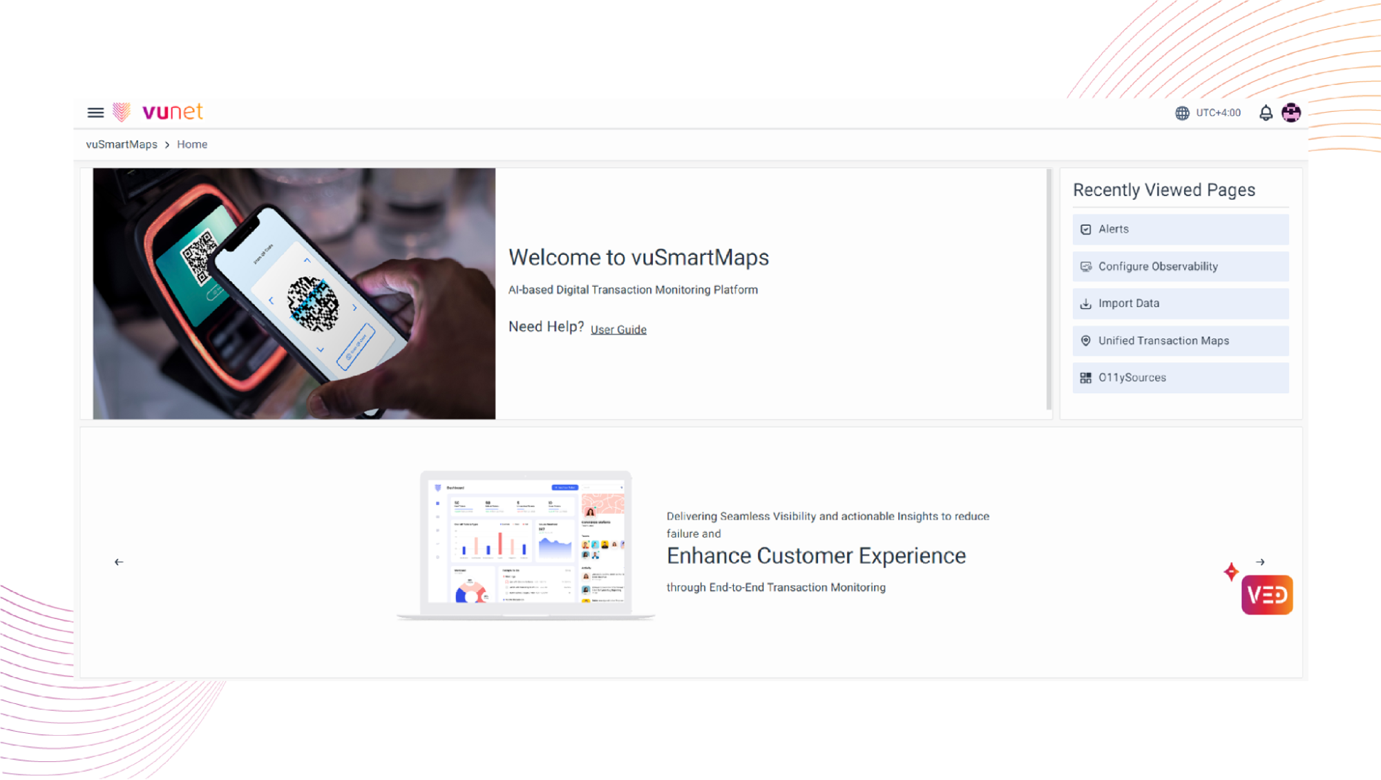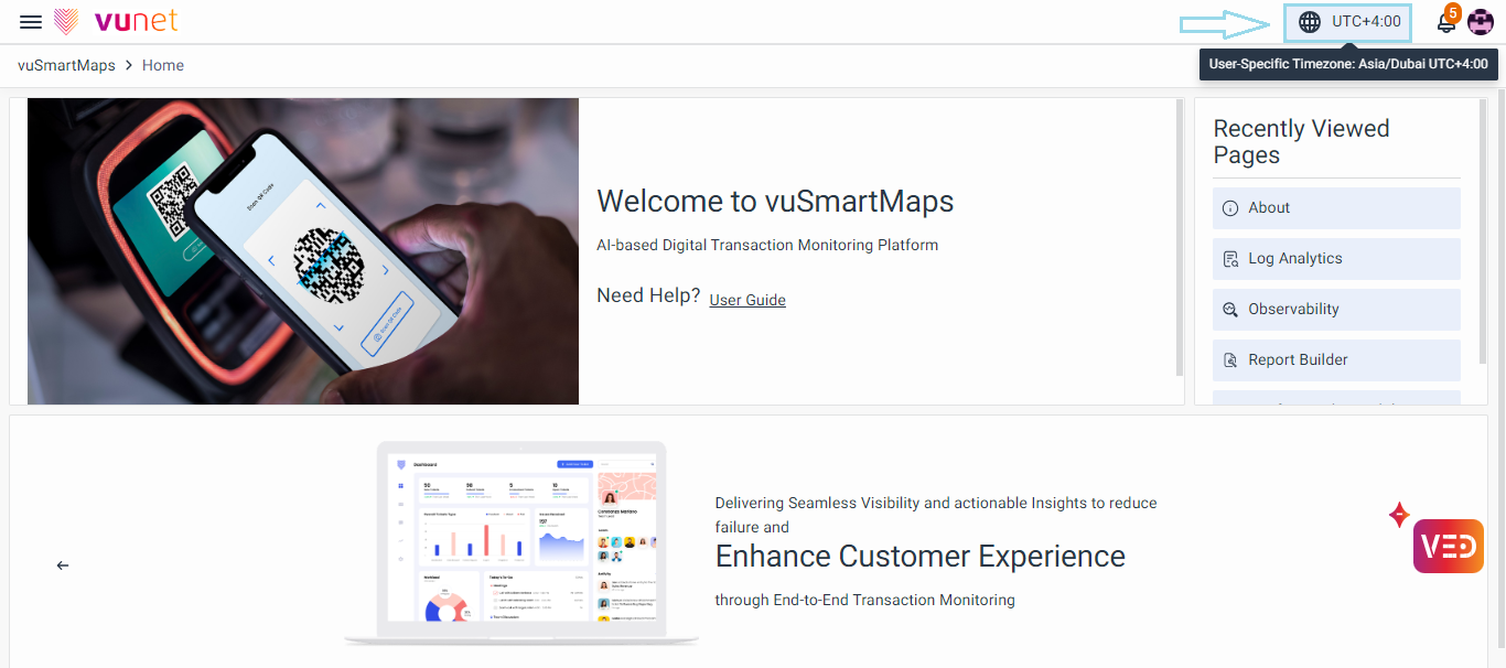 Overall, the homepage is essential for users of vuSmartMaps as it offers a centralized hub for platform navigation and access to helpful resources.