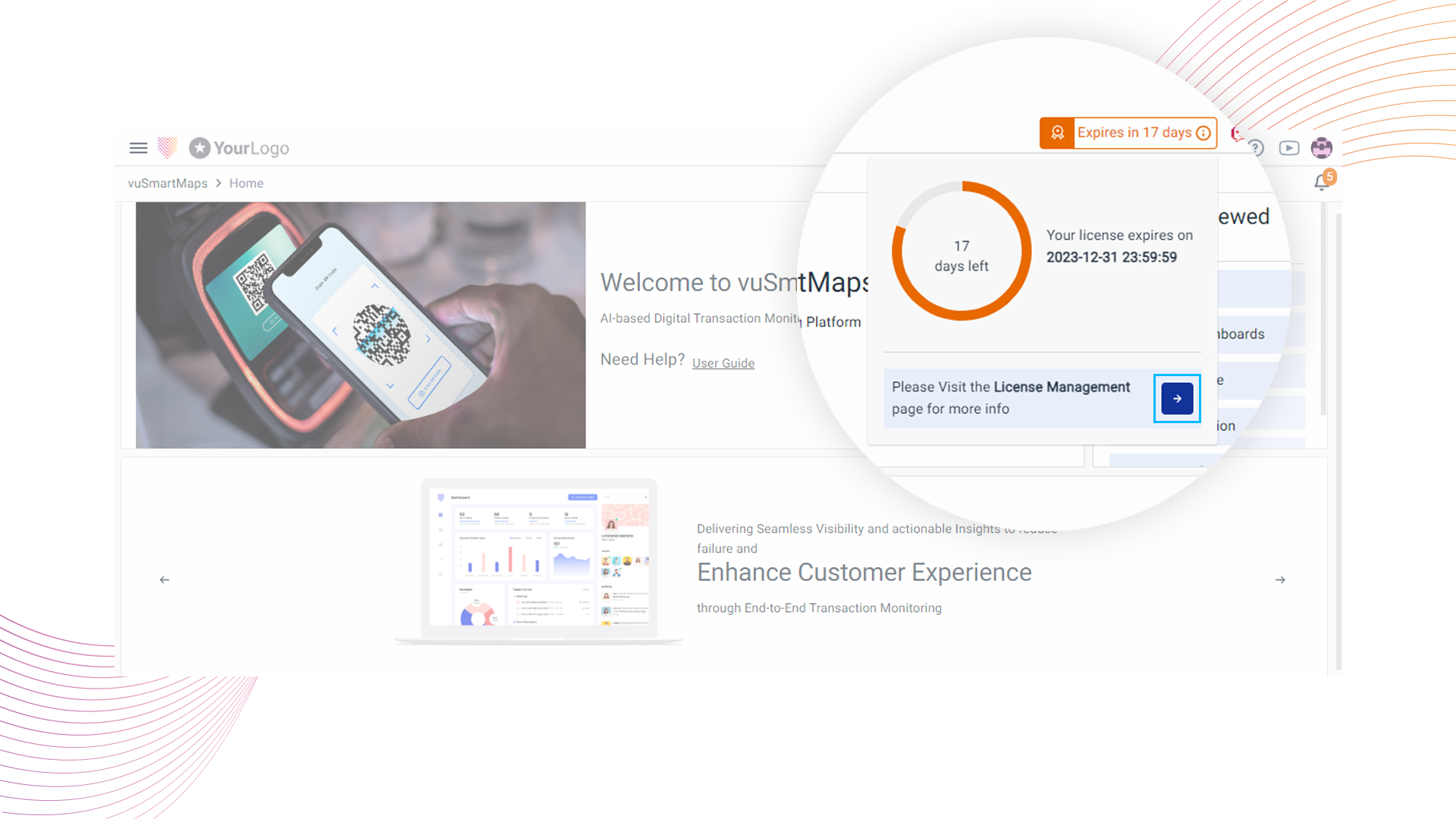 - Clicking the blue arrow on the pop-up will navigate you to the License Management Page.