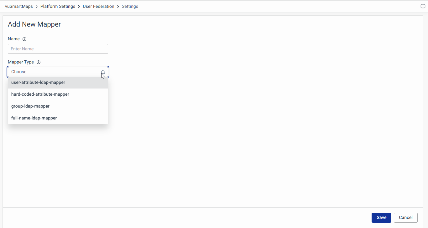 Use this mapper to synchronize LDAP groups with vuSmartMaps roles, ensuring seamless role-based access control.