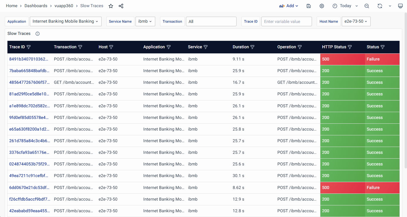 - HTTP Status – Lists the HTTP response codes for the failed traces (e.g., 500, 502, 403, etc.).