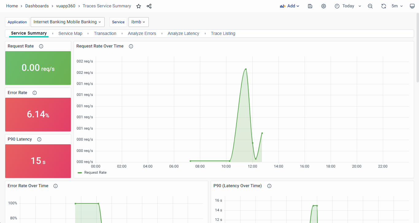 - Request Rate, Error Rate, and Latency Graphs: These graphs offer pictorial representations of the respective metrics for the selected service. Visualizing these metrics enables you to spot trends and anomalies, facilitating proactive decision-making.