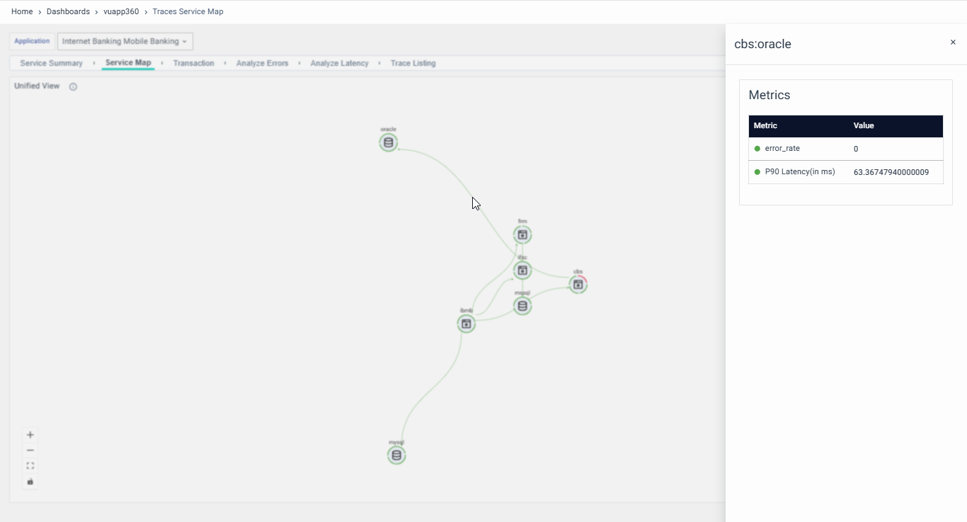 - Clicking on a Trace ID navigates to the Trace Map Dashboard, where users can investigate the request's journey, identify bottlenecks, and analyze dependencies.
