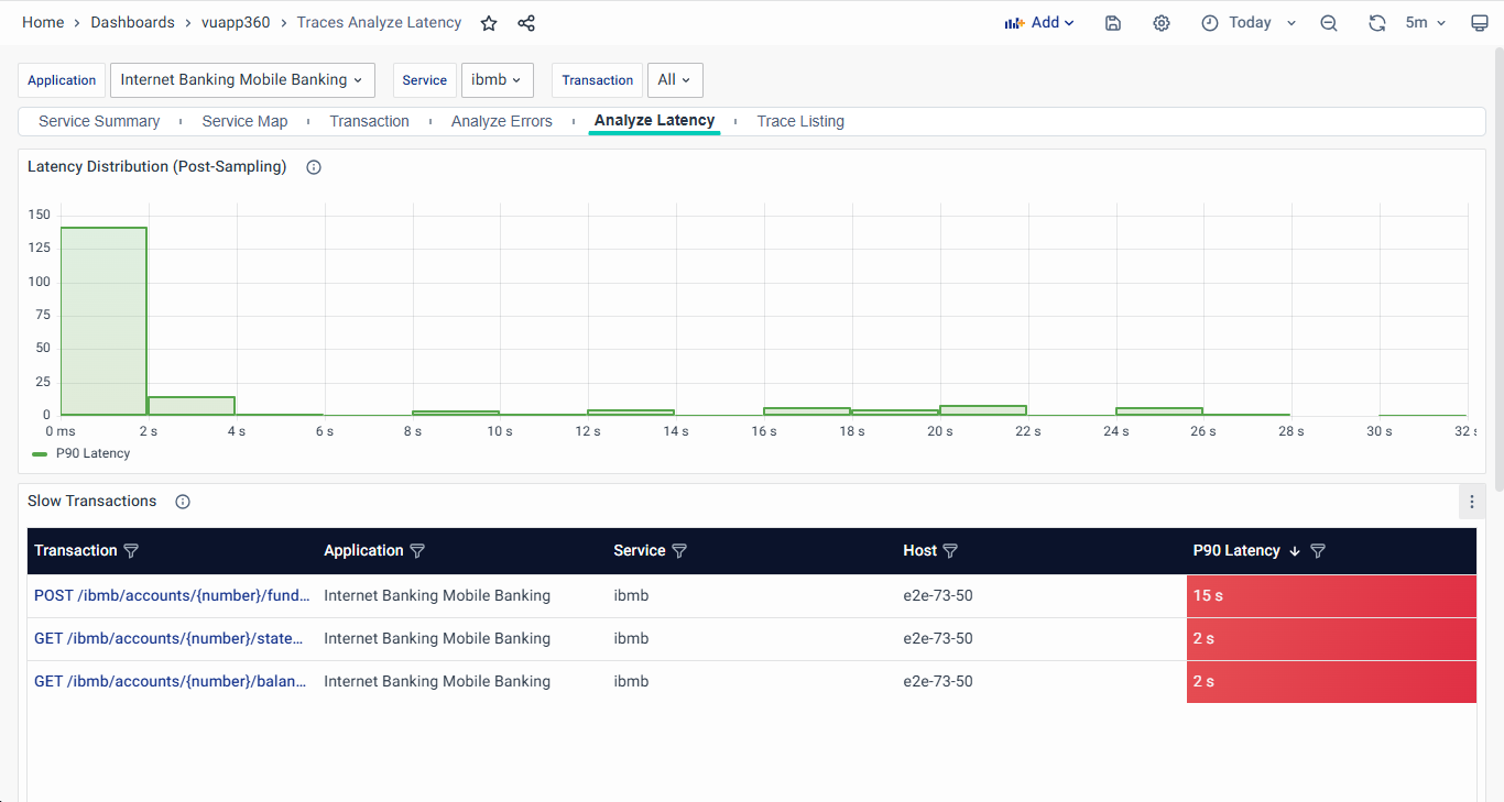- The visual representation of the latency is provided against Hosts, Services, and API Transactions, enabling users to monitor and assess application health effectively.