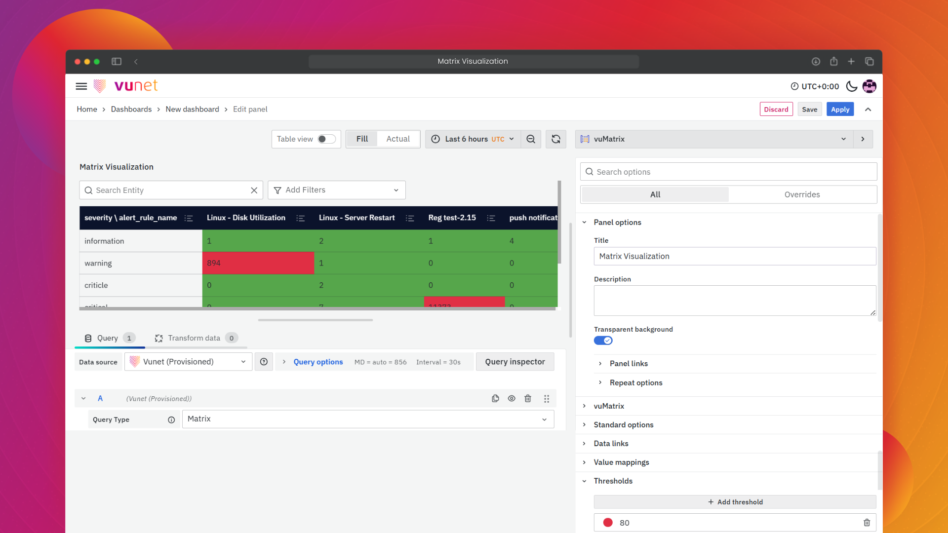 Matrix Visualization is a powerful tool for presenting data in a tabular format, making it easy to showcase aggregated metrics over a specific time period. It's especially useful when you need to display data across multiple groups.