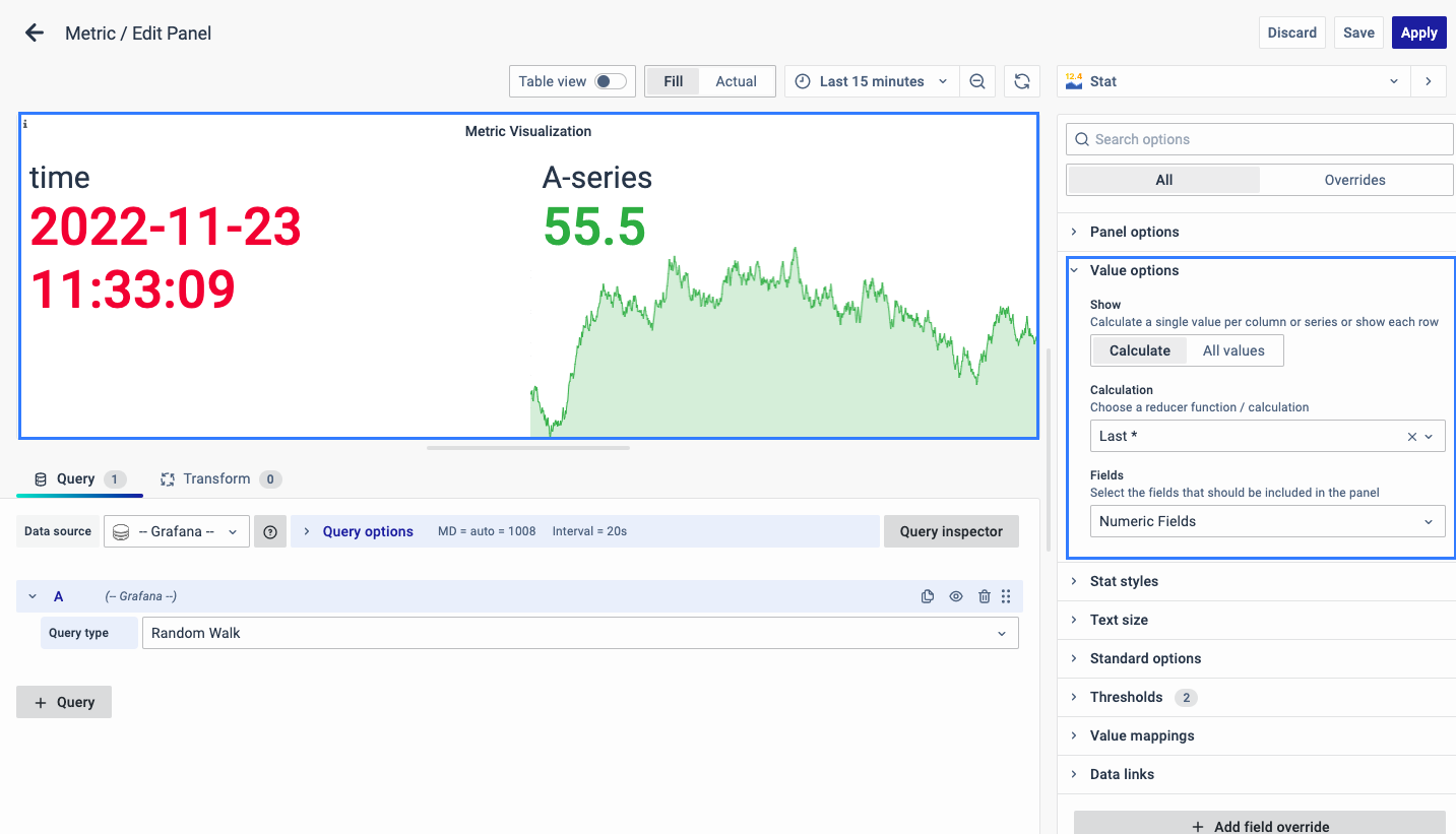 You can personalize your visualizations directly from the settings menu in the panel editor, without writing any code.