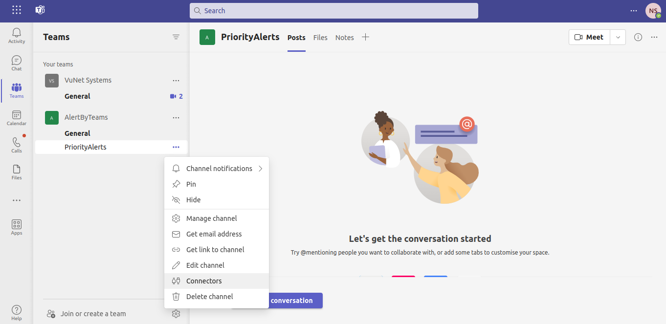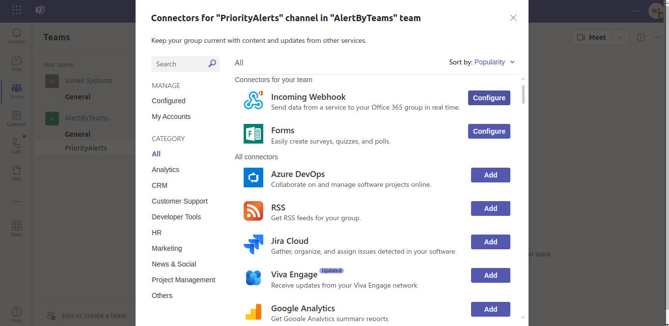 Ensure that you have the necessary permissions to create and configure connectors in the Teams channel you want to use. You may need to be a Team Owner or have administrator privileges.