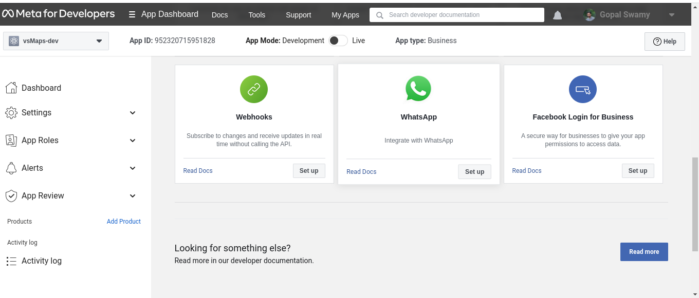 - Add a Product: On the left sidebar, click on "Products" and then click the "Set Up" button next to "WhatsApp." Follow the setup process, which may involve agreeing to terms and conditions.