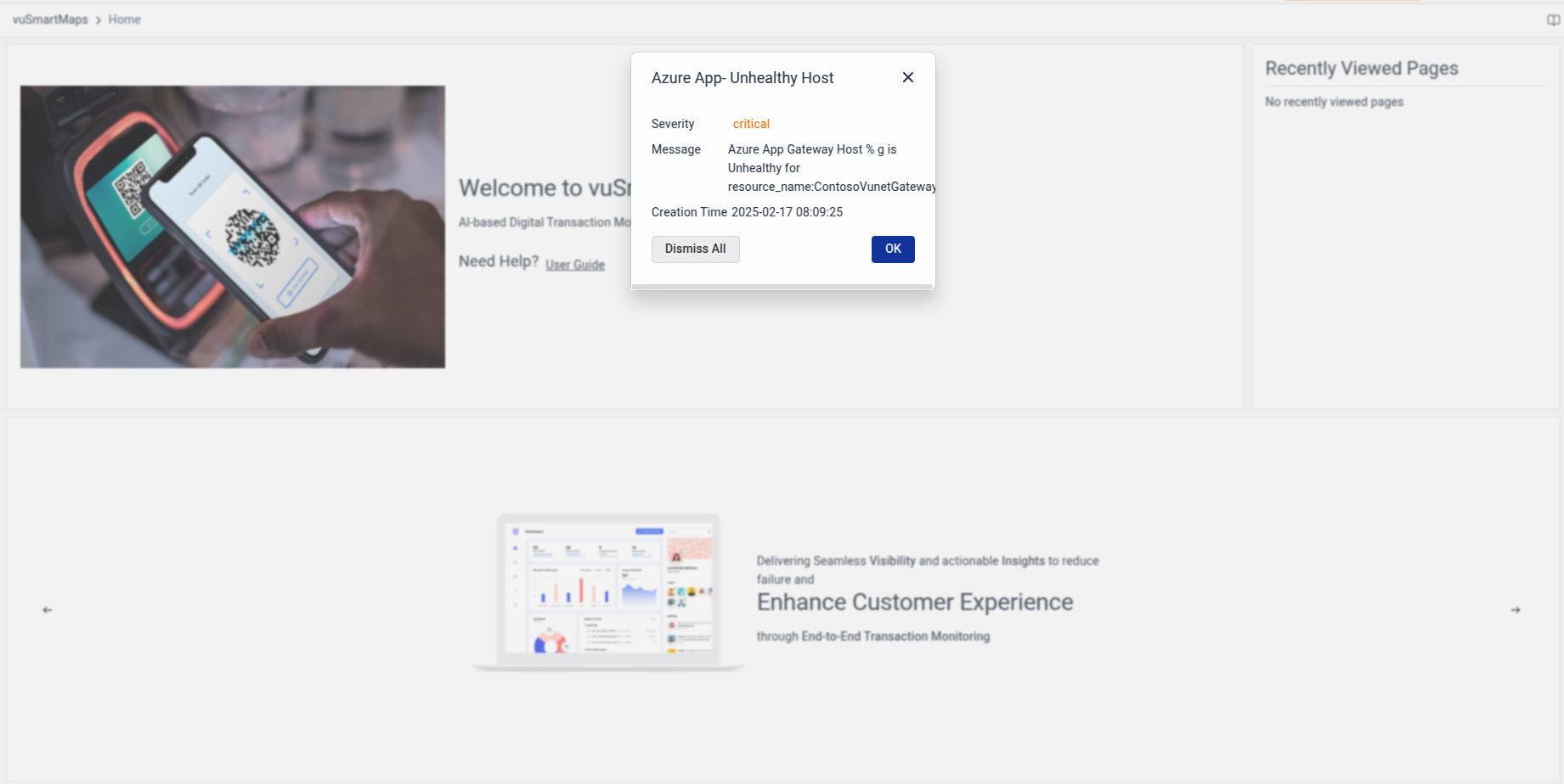 In vuSmartMaps, Alert Pop-Ups Integration ensures timely awareness of critical system events by displaying real-time alerts with a buzzer sound. It helps users promptly respond to important notifications, categorize alerts by severity, and customize alert behavior, improving monitoring efficiency and reducing the risk of missing critical issues.