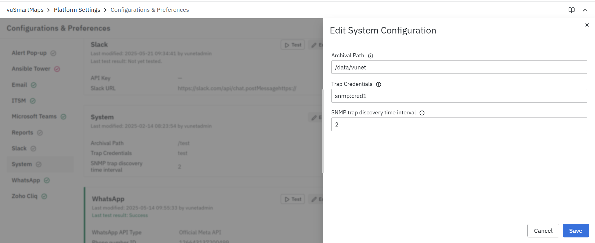 System configurations on the following aspects can be configured with the vuSmartMaps platform.