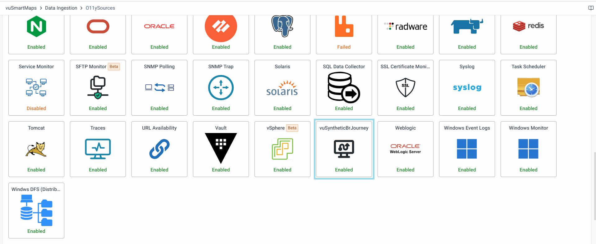 • Click the Enable button to activate vuSyntheticBrJourney O11ySource.