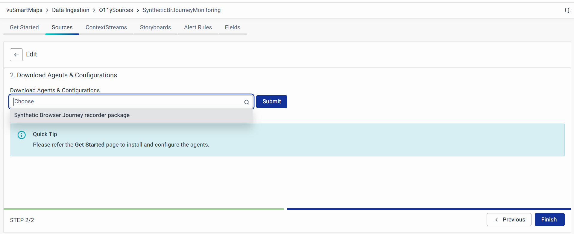 1. Download the Synthetic Browser Journey recorder package from the agent configuration wizard.