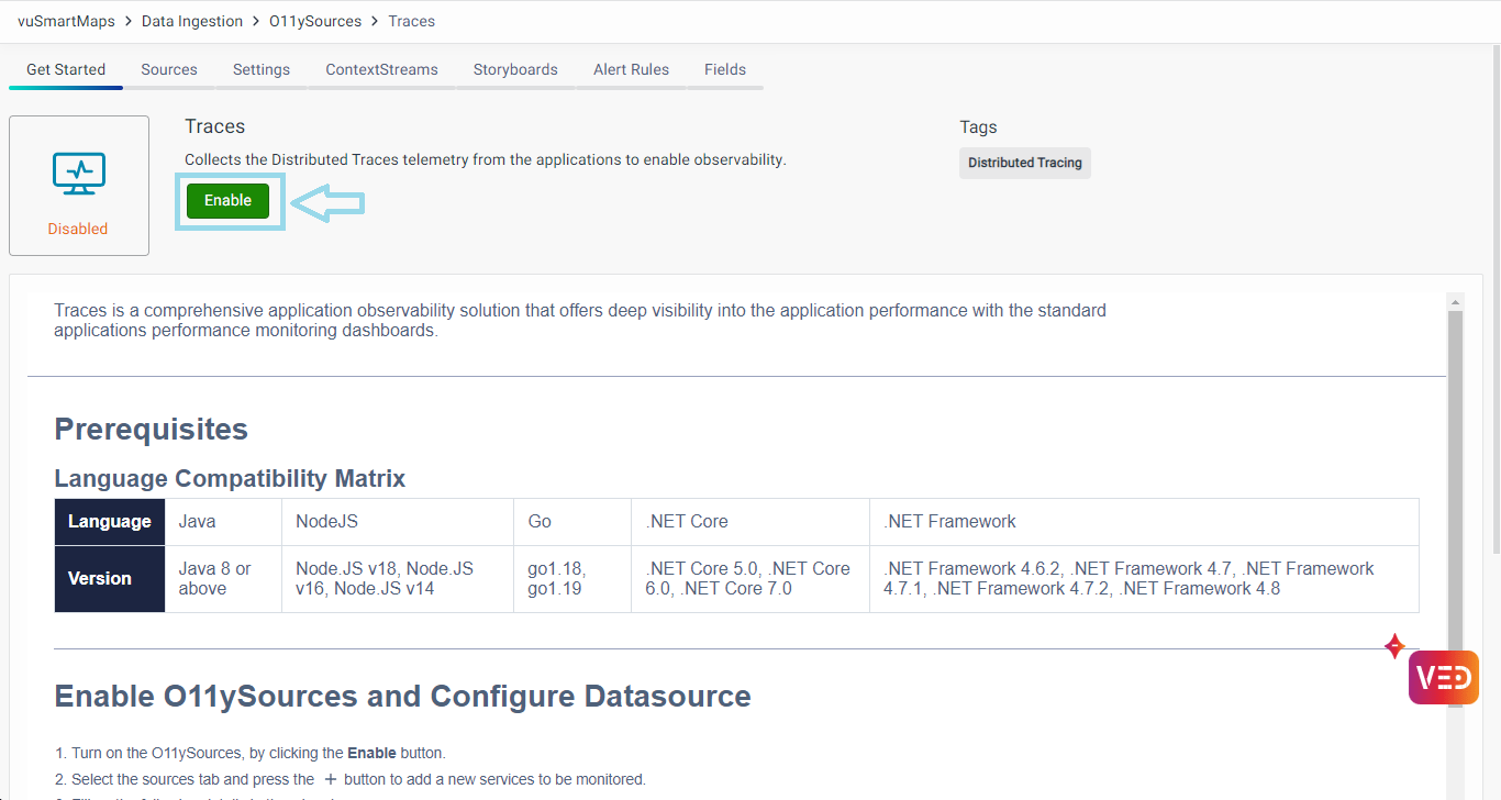 Following these steps, you have successfully enabled Traces O11ySource and configured the data sources for real-time application performance monitoring.