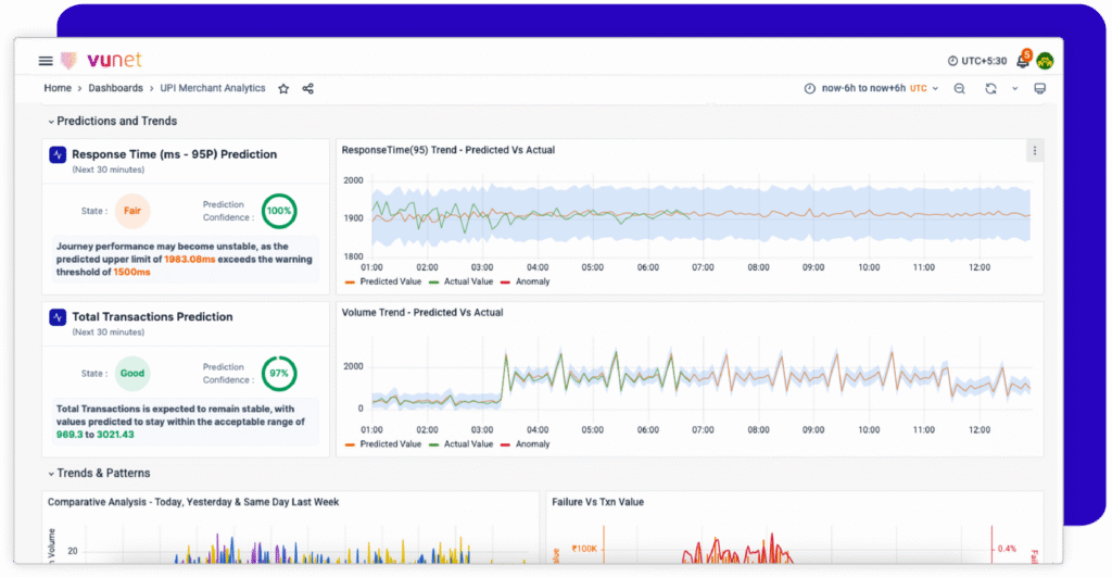 VuNet’s Business-Centric Observability platform, vuSmartMaps™ seamlessly links IT performance to business metrics and business journey performance. It empowers SRE and IT Ops teams to improve service success rates and transaction response times, while simultaneously providing business teams with critical, real-time insights. This enables faster incident detection and response.