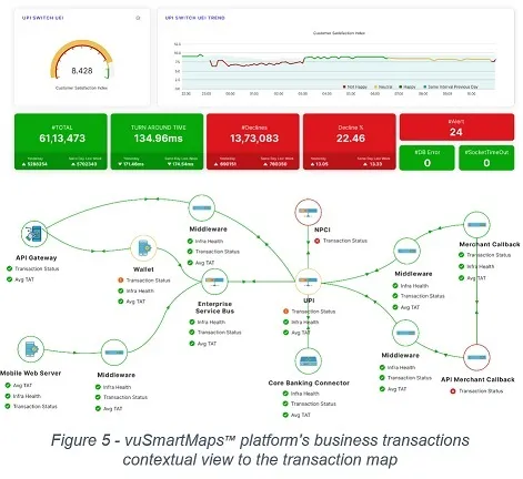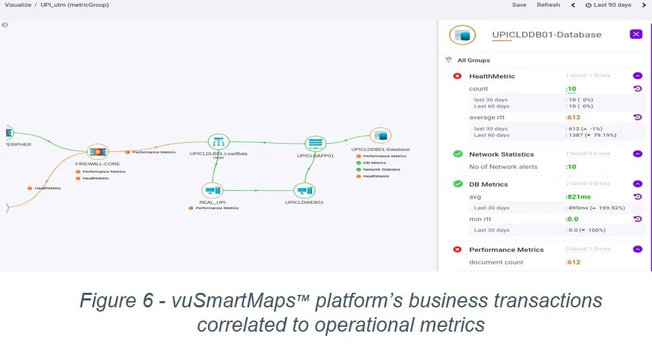 vuSmartMaps™ platform correlates the business transactions (Figure 5) to the unified transaction system map of your business application so your operations teams can: